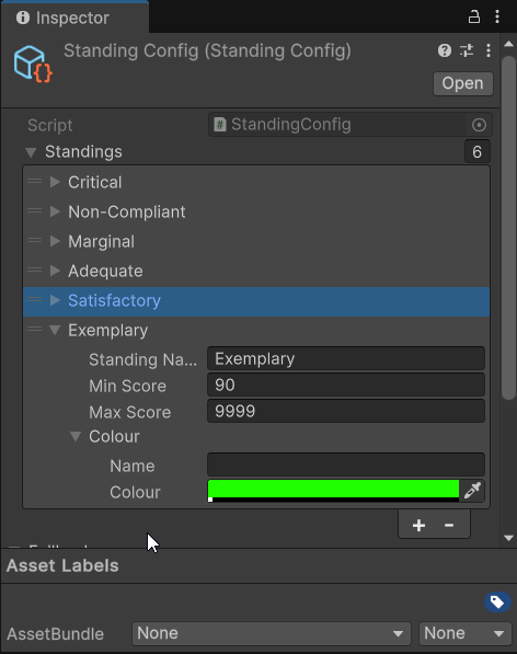 Employee Standing is stored in a scriptable object with configurable score ranges, titles, and colour coding. The HR terminal now displays this standing information in colour to make it immediately clear where you sit within the corporate hierarchy.