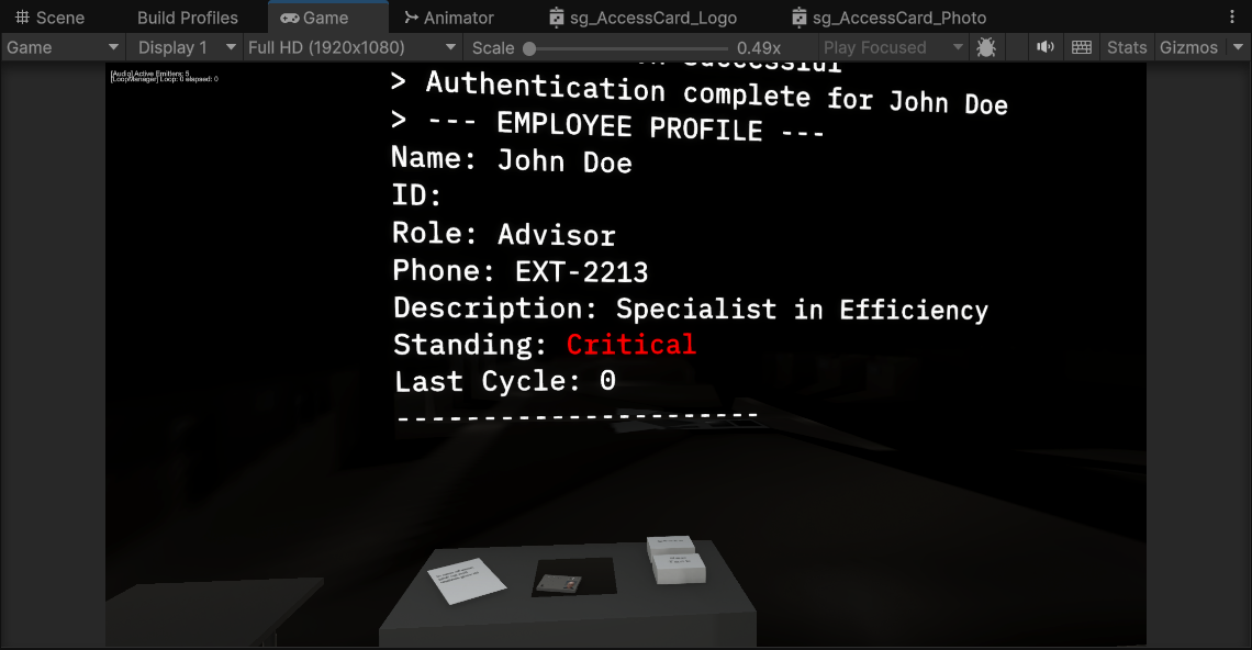 Access cards now carry employee-specific stats that can be viewed at the worker terminal station. If an ID card is on the authentication spot, you can press the 'Employee Stats' button to view information about that specific employee - including the player's own file.