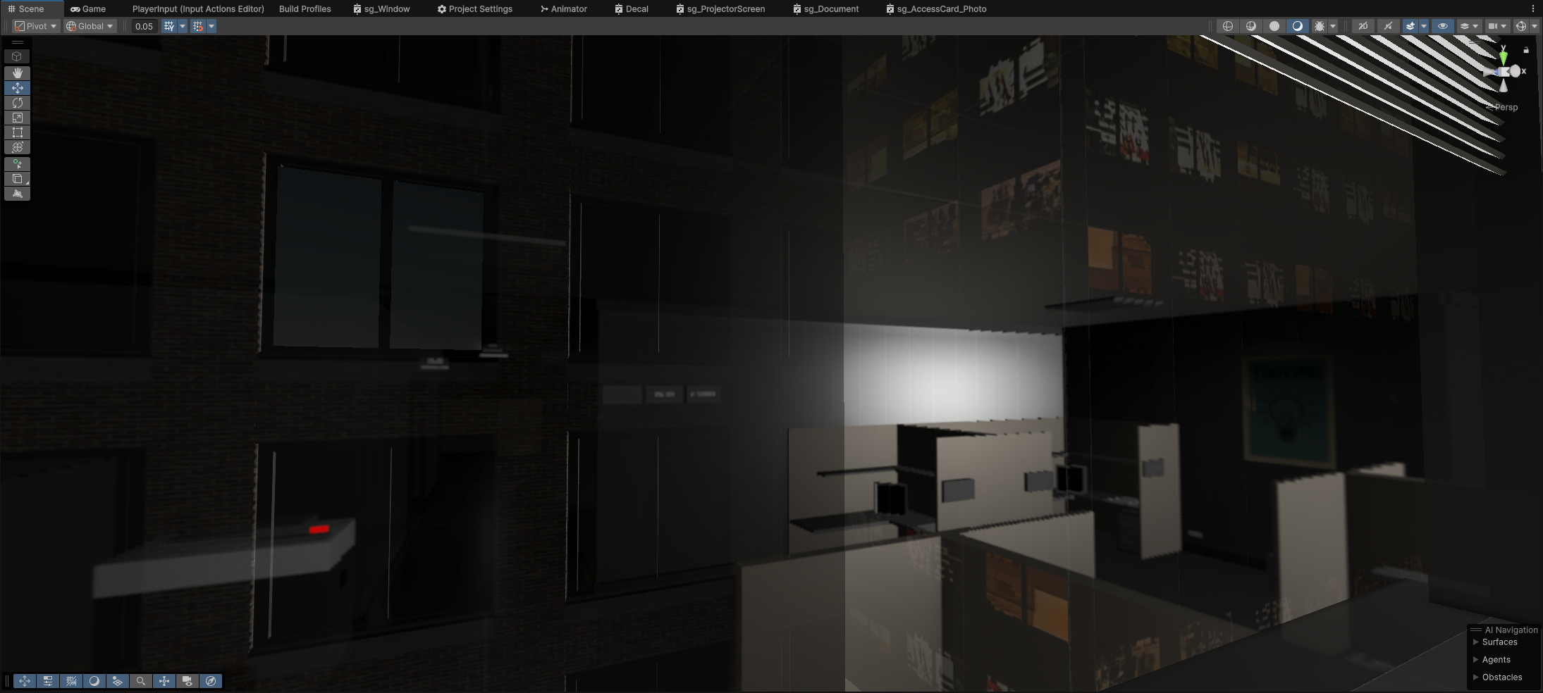 This sprint gave me time to expand the world and make it feel more cohesive and lived-in. Subtle environmental storytelling, material choices, and layout tweaks all help sell the atmosphere. Worldbuilding is one of my favorite aspects of game development - the part where everything starts connecting and the spaces feel like they belong to a larger narrative. I leaned into small details: adding exterior facades, refining interior textures, and layering in hints about the facility's purpose. These touches are what makes the game feel alive and give weight to the looping structure.