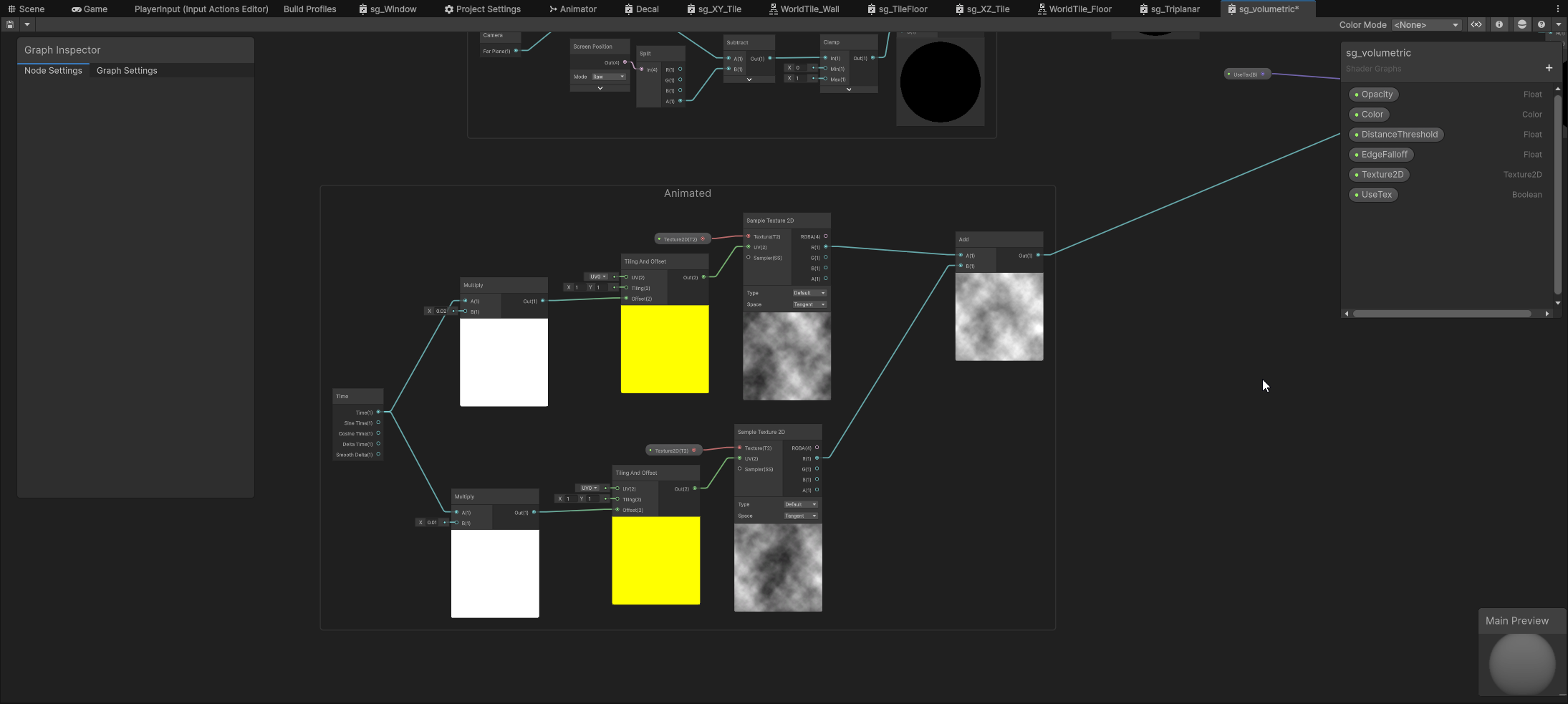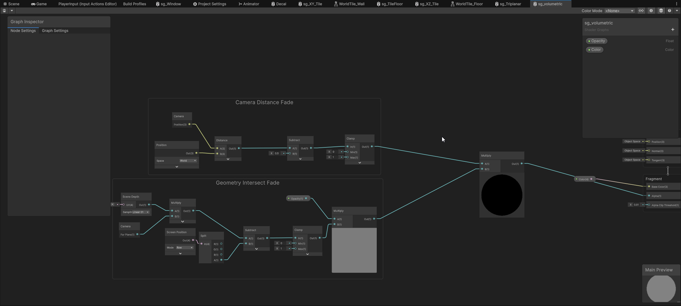 With more energy later in the sprint, I moved into lighting and effects. My first attempt was a full-screen HLSL volumetric shader tied to a directional light, but managing an interior-heavy scene with exterior bleed was too much of a fight. I pivoted to localised volumetric shaders using Shader Graph, attached to planes and cones for controlled atmospheric beams.