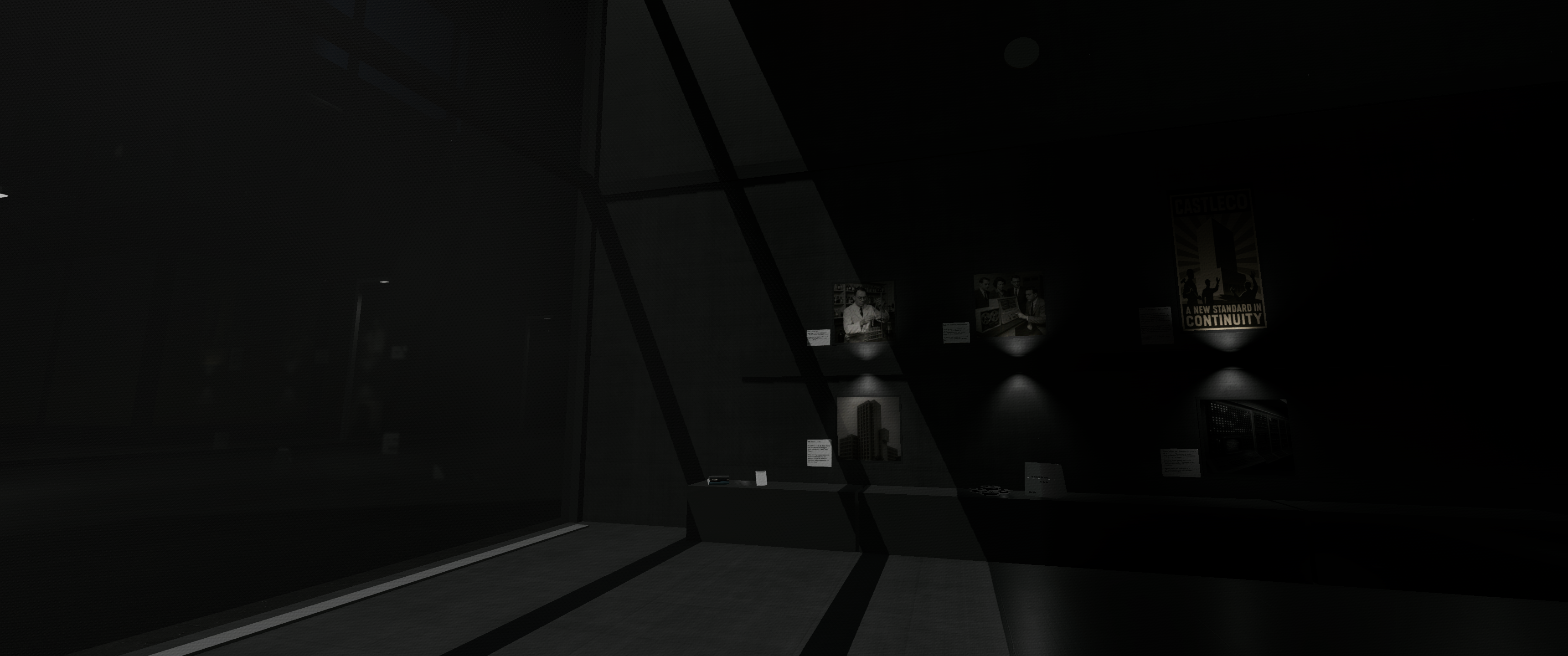 One of the first areas tied to actual player progression and giving narrative breadcrumbs was the archive, a large room filled with shelves of boxes and files. The objective for the player is to enter three codes. These codes are based on the initial ‘correct’ code, which the player then needs to figure out what the new code should be based on the information provided.