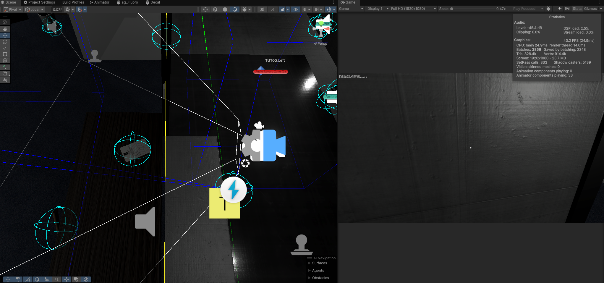 - A stray motion blur setting was also causing issues with pixels being too blurry to read, leading to a degraded visual experience, this was turned off permanently and replaced by a global volume within the scene - which can be programmatically altered.